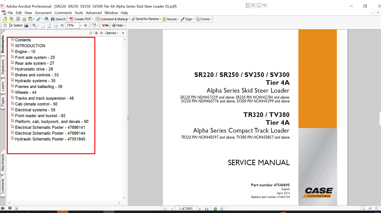 | โ Included Items | Official and Complete Service Repair Manual for Case SR220 Skid Steer |