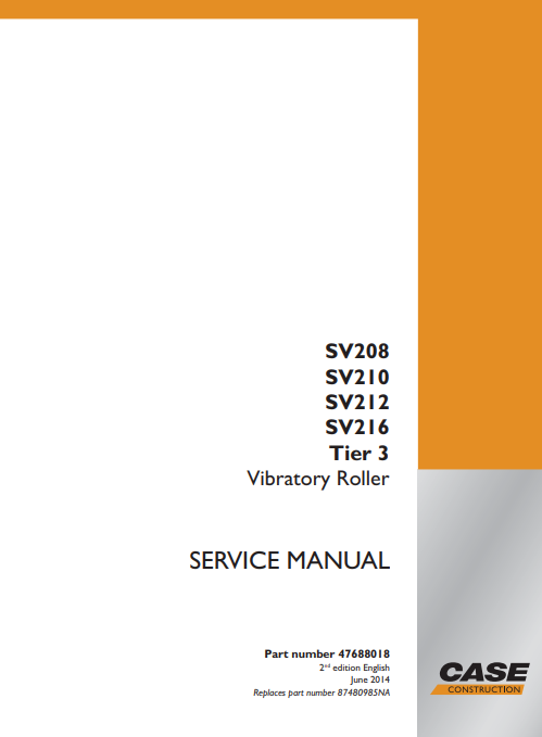 Case SV208, SV210, SV212, SV216 Tier 3 Vibratory Roller Service Repair Manual
