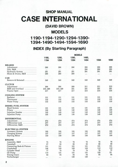 Case david brown 1190-1194-1290-1294-1390-1394-1490-1494-1594-1690 Tractor Shop Manual