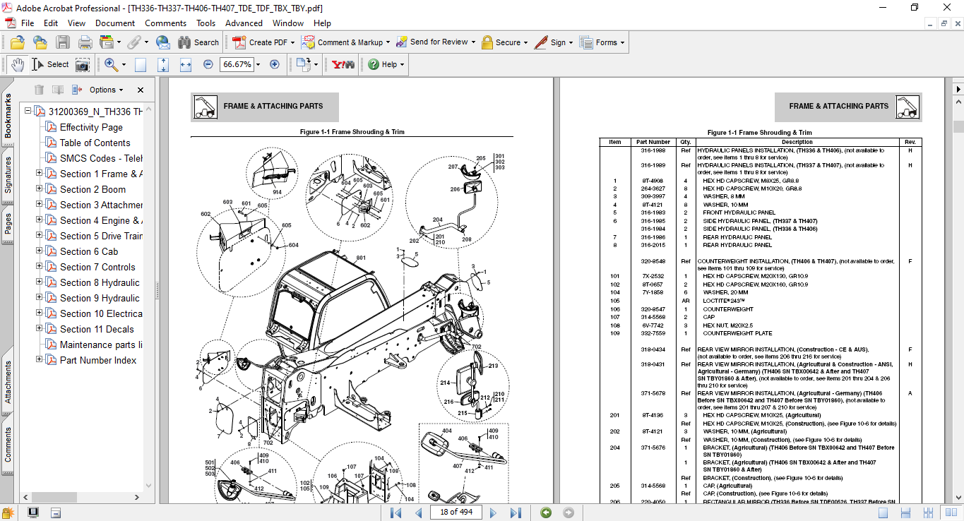 Caterpillar TH336, TH337, TH406, TH407 Telehandlers Parts Manual