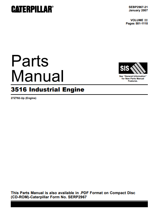 With This Original Factory Parts Manuals The Technician can easily find any Part Number and Correct Part encountered in the operation of your Caterpillar Industrial Engine Models of :