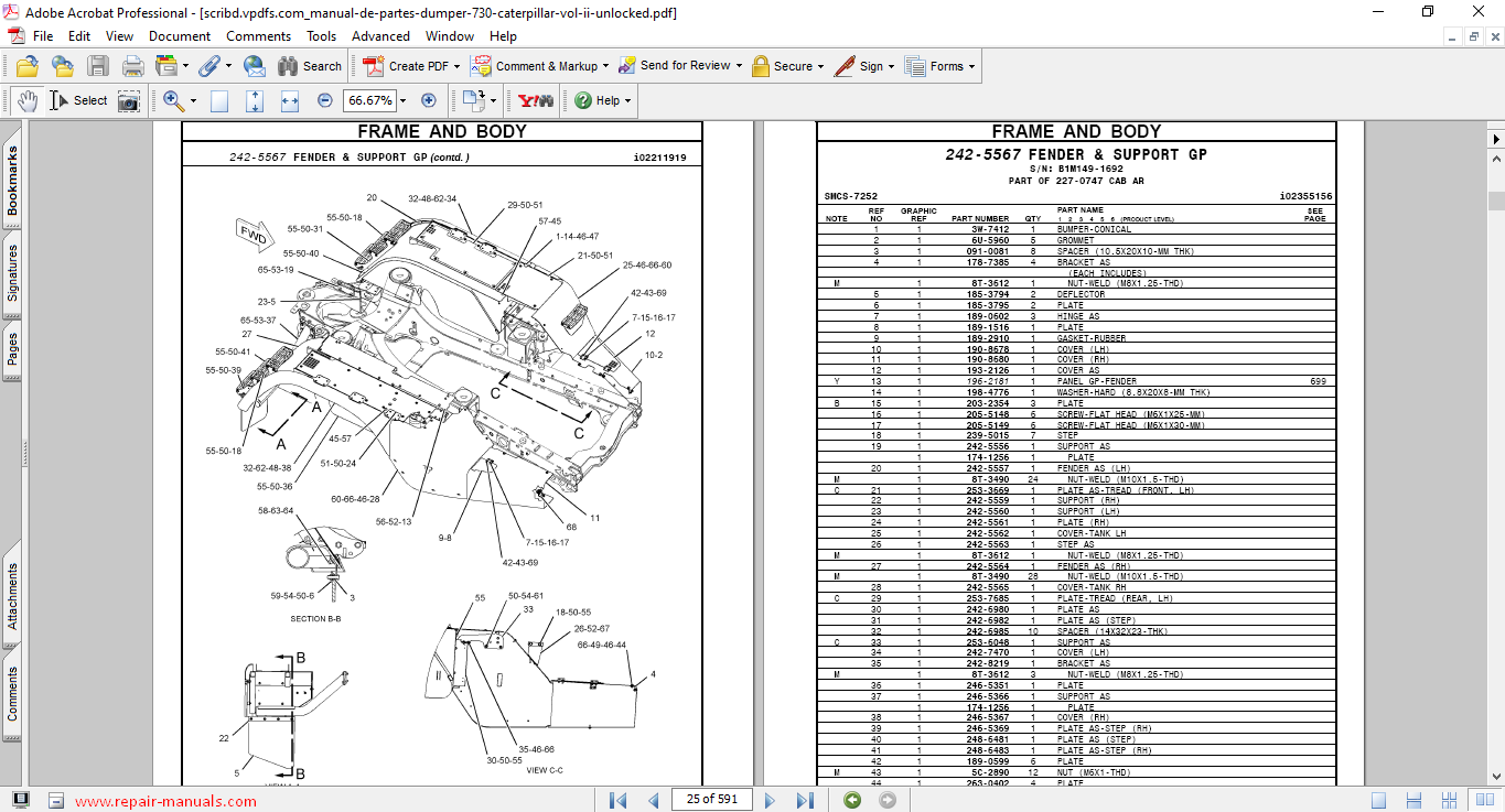 Caterpillar Series 730 Articulated Truck Parts Manual