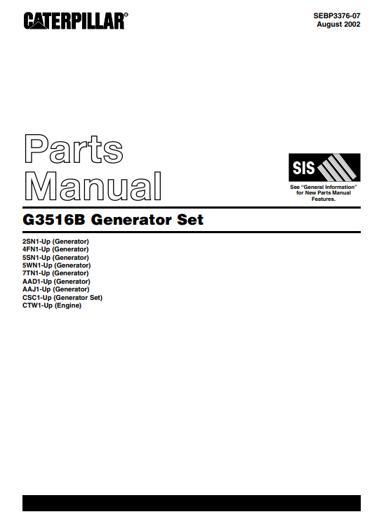 Caterpillar G3516B Generator Set Parts Manual