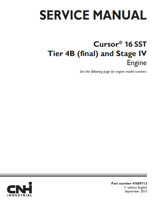 The Cursor 16 SST Engine Service Repair Manual is an essential resource for both professional mechanics and DIY enthusiasts looking to maintain or repair their Cursor 16 SST engine with confidence. This comprehensive manual provides detailed step-by-step instructions, complete with diagrams and illustrations, to guide you through every aspect of engine service, from routine maintenance to complex repairs. With a focus on clarity and precision, the manual covers critical topics such as troubleshooting, disassembly, reassembly, and parts replacement, ensuring that you have all the information needed to keep your engine running smoothly. Whether you’re addressing minor issues or undertaking major repairs, this manual is designed to enhance your understanding of the engine’s mechanics, ultimately saving you time and money while ensuring optimal performance. Invest in the Cursor 16 SST Engine Service Repair Manual today and empower yourself with the knowledge to tackle any engine challenge with ease