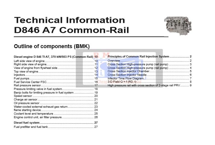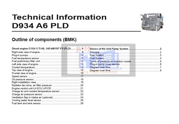 his Liebherr Technical Information Manual provides detailed engineering and system specifications for the D934 A6 PLD, D846 A7 Common-Rail, and D9508 A7 Common-Rail diesel engines. These engines are widely used across Liebherrโs construction, industrial, and heavy equipment lines. The manual is essential for technicians, service engineers, and fleet maintenance professionals requiring in-depth technical knowledge for diagnostics, servicing, and system integration.
