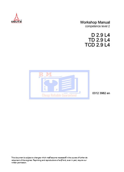 Deutz Engine D2.9, TD2.9, TCD2.9 L4 Workshop Manual