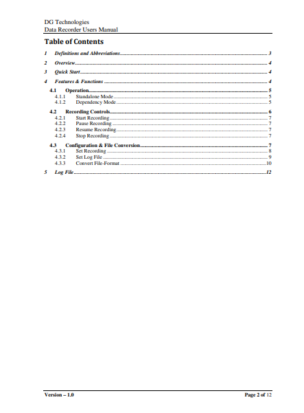DG Technologies Data Recorder Users Manual
