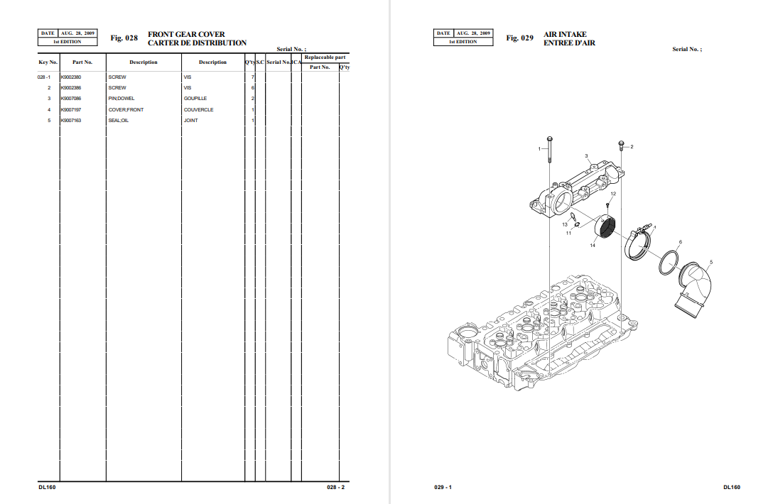 Parts manual for Doosan DL160 Wheel Loader, detailing components and specifications for maintenance and repairDoosan DL160 Wheel Loader Parts Manual