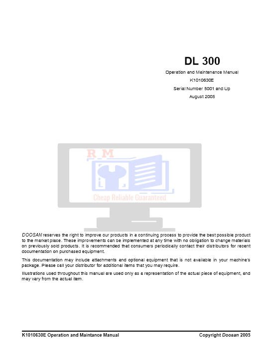 Whether you’re performing a quick service or a complete overhaul, this manual is your essential companion for maximizing the performance and longevity of your Doosan DL300 Wheel Loader