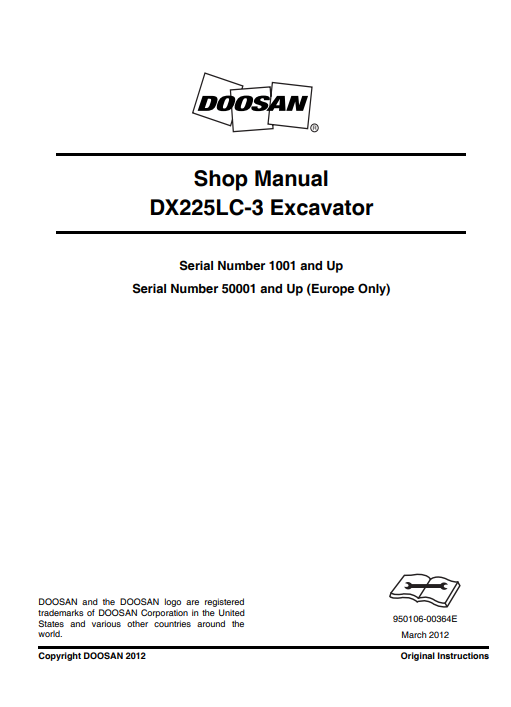Doosan DX225LC-3 Excavator Workshop Repair Manual