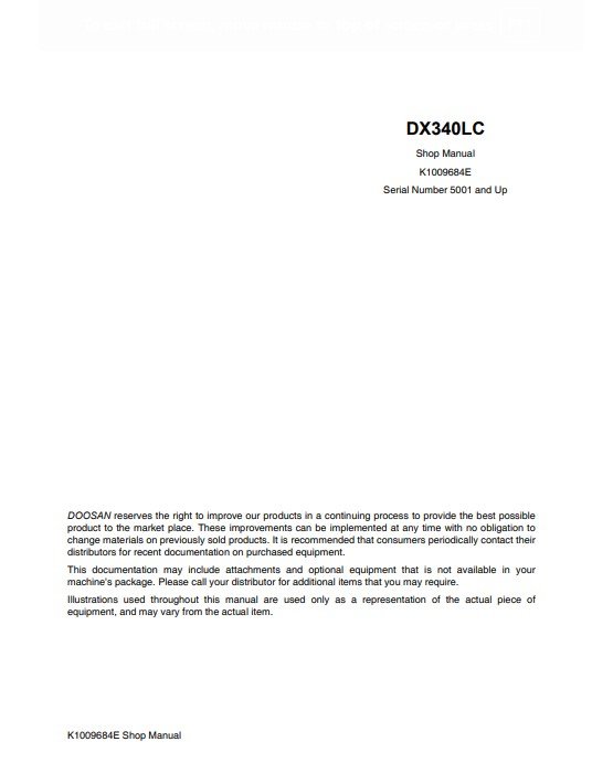 With This Original Factory Service Repair Manual The Technician can Find and Solve any problems encountered in the operation of your Doosan Excavator Models of :