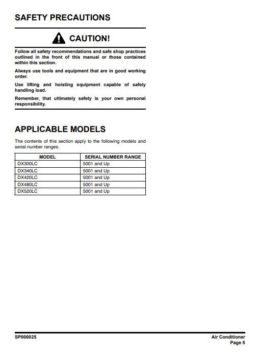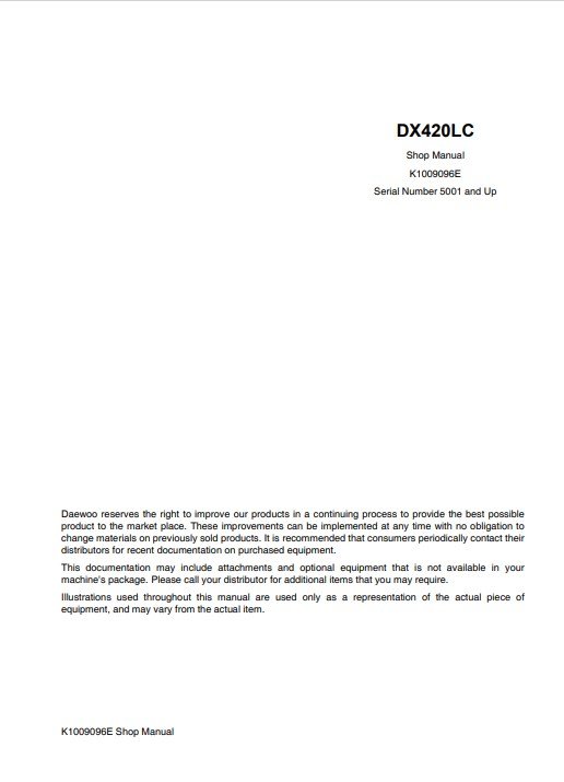 With This Original Factory Service Repair Manual The Technician can Find and Solve any problems encountered in the operation of your Doosan Excavator Models of :