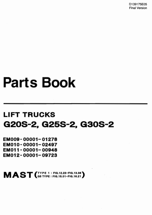 Parts manual for Doosan G20S-2, G25S-2, and G30S-2 lift trucks, detailing components and maintenance informationDoosan G20S-2, Doosan G25S-2, Doosan G30S-2 Lift Trucks Parts Manual
