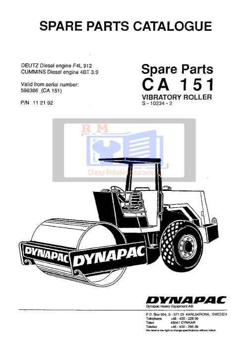 This official Parts Manual for the Dynapac CA151 S-1023-2 vibratory soil compactor provides detailed exploded views and accurate part numbers for every component. It is an essential resource for ordering replacement parts, performing repairs, and understanding machine assembly.