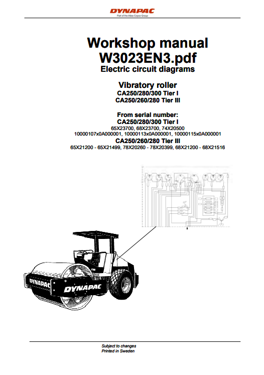 Dynapac Vibratory Roller CA250, CA280, CA300 Electric circuit diagrams