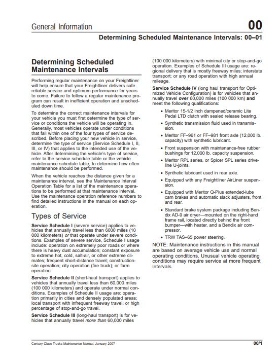 Century Class Trucks Maintenance Manual