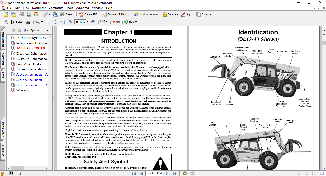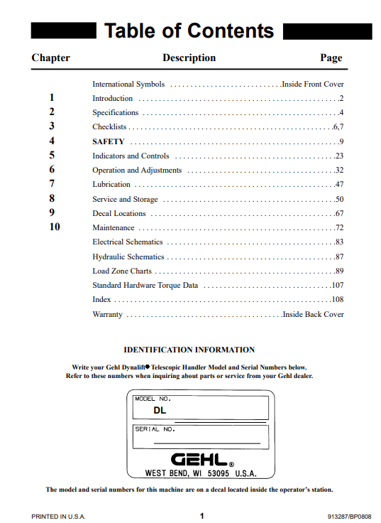 Enhance your operational efficiency with the GEHL DL7, DL9, DL11, DL12 Dynalift Telescopic Handlers Operator’s Manual. This comprehensive guide provides essential information on the safe and effective use of your telescopic handler, ensuring optimal performance and longevity. With detailed instructions, maintenance tips, and troubleshooting advice, this manual is an invaluable resource for operators seeking to maximize productivity and minimize downtime. Invest in your equipment’s success and elevate your handling capabilities today