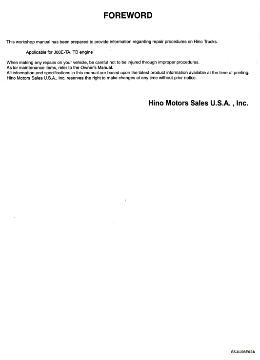 Hino 2002 J08E-TA Engine , J08E-TB Engine Workshop Repair Manual