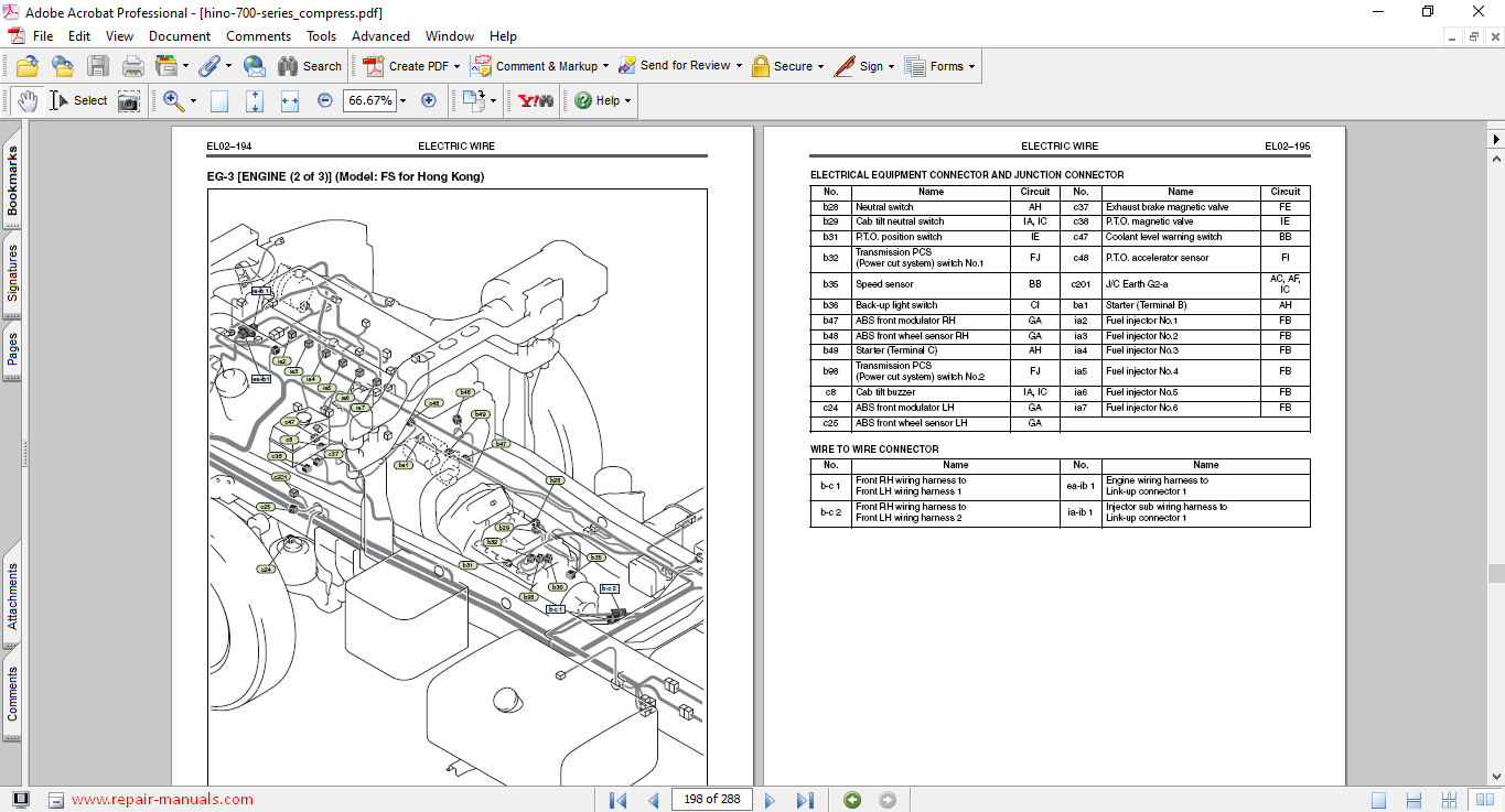 The Hino 700 Series Workshop Repair Manual (ELECTRIC) is an essential resource for mechanics and Hino truck owners, providing comprehensive guidance on maintenance and repair procedures. This digital manual features detailed diagrams, troubleshooting tips, and step-by-step instructions, ensuring you have the knowledge needed to keep your vehicle in optimal condition. With its user-friendly format, you can easily access critical information, saving time and enhancing efficiency in your workshop. Invest in this manual to ensure your Hino 700 Series operates smoothly and reliably for years to come