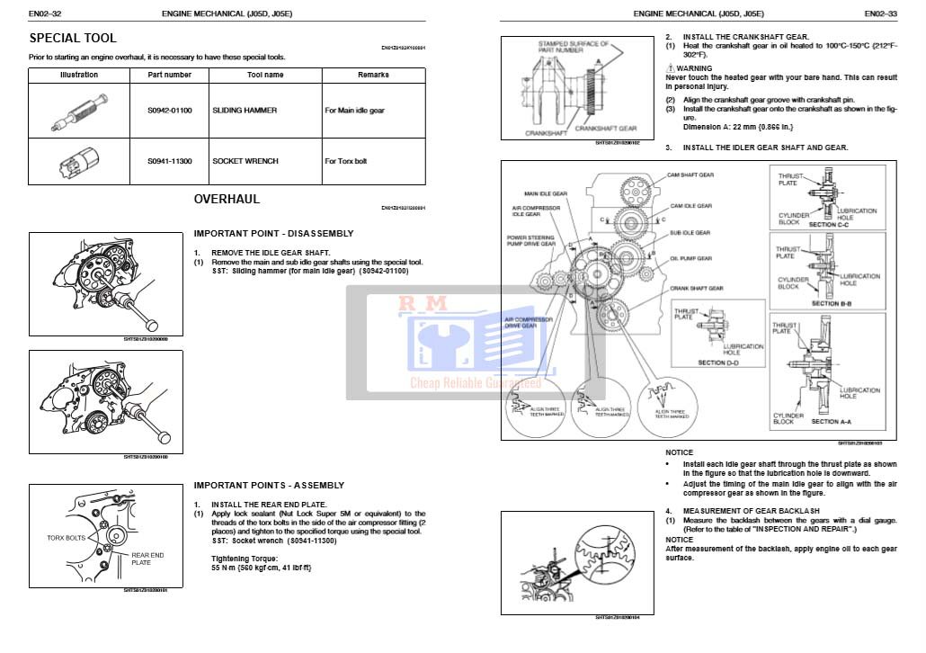 Whether you’re performing a quick service or a complete overhaul, this manual is your essential companion for maximizing the performance and longevity of your Hino J05D-TI Engine and Hino J05E-TI engine