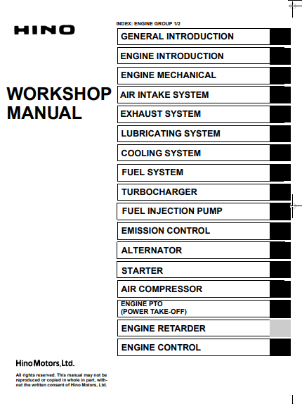 With This Original Factory Workshop Repair Manual The Technician can Find and Solve any problems encountered in the operation of your HINO Engine Models of :