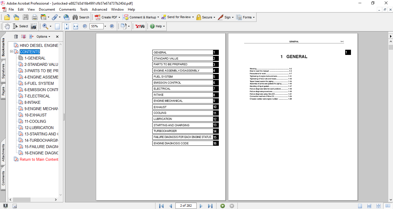 Contents of the pdf service manual