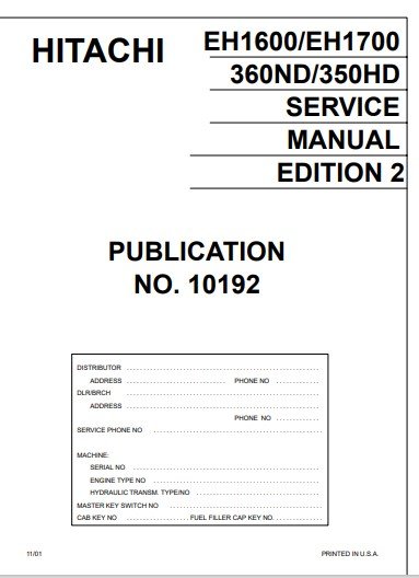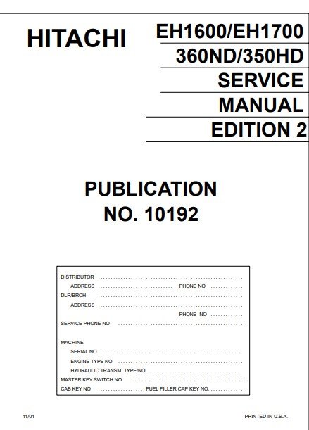 EH1600, EH1700, 360ND, 350HD Service Manual 2nd Edition