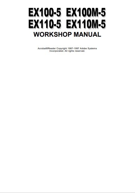 Discover the essential Hitachi EX100-5, EX1110-5, EX100M-5, and EX110M-5 Workshop Manual, designed to provide comprehensive guidance for maintenance and repair. This manual is an invaluable resource for technicians and operators, featuring detailed diagrams, step-by-step instructions, and troubleshooting tips to ensure optimal performance of your machinery. Enhance your operational efficiency and prolong the lifespan of your equipment with this expertly crafted manual, making it a must-have for any workshop