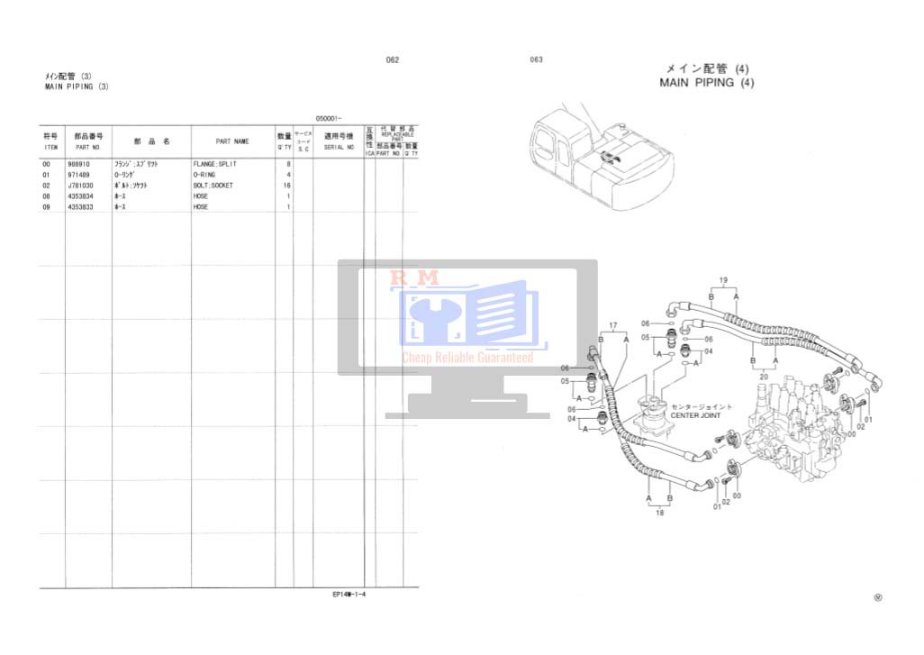 Ensure precise maintenance and repairs for your Hitachi excavator fleet with this official Parts Manual, covering the EX200-5, EX200LC-5, EX210H-5, and EX210LCH-5 models. This comprehensive manual includes detailed exploded diagrams, factory part numbers, and component listings to help you identify and order the correct parts with confidence.