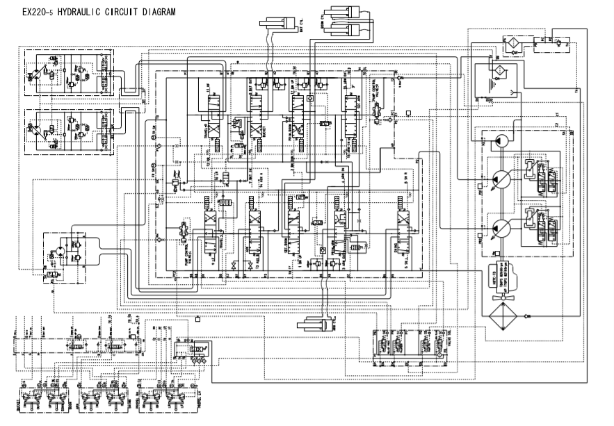 Hitachi EX220-5 Excavator Complete Hydraulic Circuit Diagram