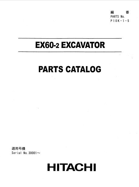 This comprehensive Parts Manual for the Hitachi EX60-2 Excavator covers serial numbers 30001 and up. It includes detailed exploded diagrams, part numbers, and component listings—making it an essential tool for ordering parts, performing repairs, or restoring your machine.