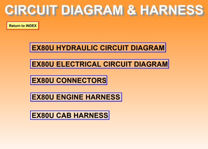 Comprehensive manuals for Hitachi EX80U Excavator shown, covering operation, maintenance, and safety proceduresHitachi EX80U Excavator Full Set of Manuals