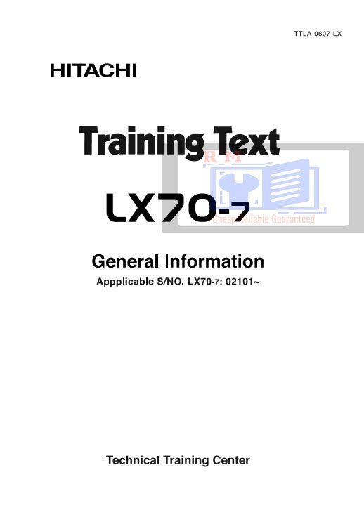 This official Service Repair Manual for the Hitachi LX70-7 and LX80-7 Wheel Loaders provides complete factory-approved procedures for inspection, maintenance, diagnostics, and repairs. Covering machines from Serial Number 05101 and up (LX70-7) and 02101 and up (LX80-7), this manual delivers the same trusted information used by Hitachi service technicians worldwide.