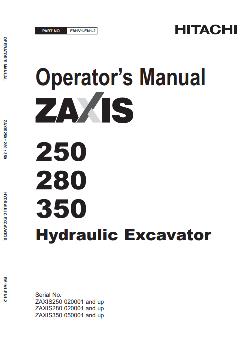 Hitachi ZAXIS 250 , Hitachi ZAXIS 280 , Hitachi ZAXIS 350 Excavator Operator’s Manual