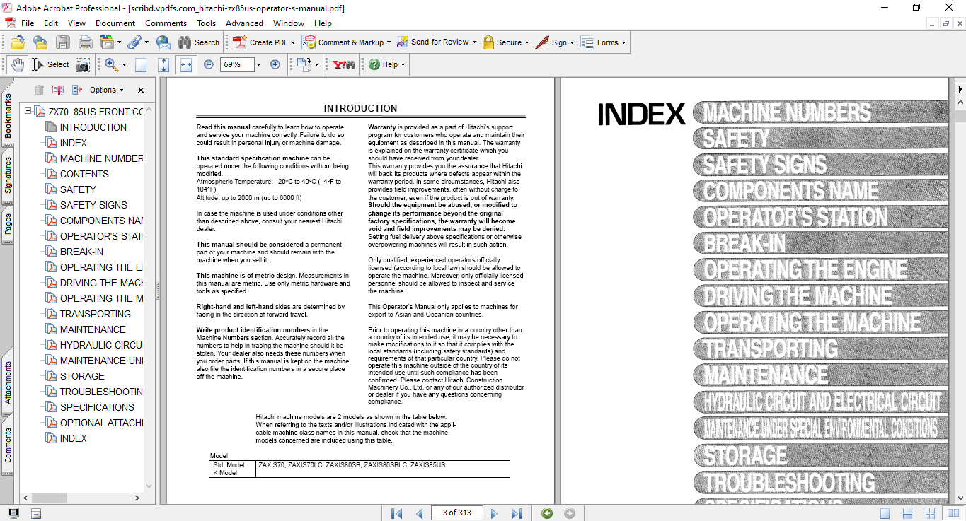 Enhance your operational efficiency with the Hitachi ZAXIS 70, 80 Series Excavator Operator’s Manual. This comprehensive guide provides essential insights into the features, functions, and maintenance of your excavator, ensuring optimal performance and longevity. With clear instructions and detailed diagrams, it empowers operators to maximize productivity while minimizing downtime. Invest in this manual to unlock the full potential of your Hitachi excavator and ensure safe, effective operation on every job site
