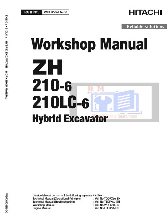 This official Workshop Manual for the Hitachi ZH210-6 and ZH210LC-6 Hybrid Excavators provides complete factory procedures for service, repair, and maintenance. Designed for use by professional technicians and heavy equipment service teams, this manual includes step-by-step instructions, detailed diagrams, and OEM specifications, including coverage of the hybrid system components.