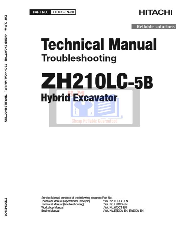 This official Technical Troubleshooting Manual for the Hitachi ZH210LC-5B Hybrid Excavator provides detailed diagnostic procedures for accurately identifying and resolving faults across all machine systems—including the advanced hybrid components. Ideal for professional technicians and service personnel, this manual is essential for efficient troubleshooting and repair.
