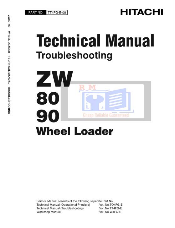 Hitachi ZW 80 and ZW 90 wheel loader troubleshooting manual, providing technical guidance for effective maintenance and repairsHitachi ZW 80, Hitachi ZW 90 Wheel Loader Technical Troubleshooting Manual