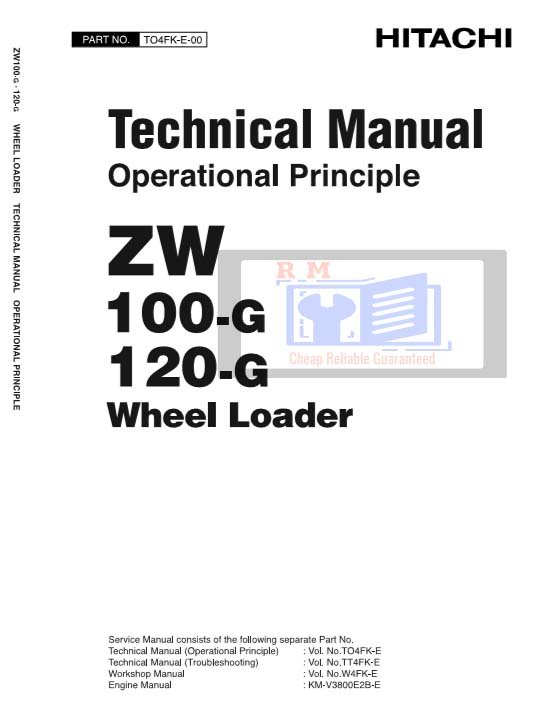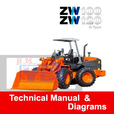 Technical manual and diagrams for Hitachi ZW 100 and ZW 120G wheel loaders, detailing specifications and maintenance proceduresHitachi ZW 100, Hitachi ZW 120G Wheel Loader Technical Manual and Diagrams