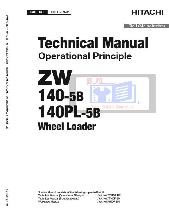 This official Operational Principles Manual is part of the Technical Manual set for the Hitachi ZW140-5B and ZW140PL-5B Wheel Loaders, providing a deep understanding of how the machine’s systems work. Designed for service engineers and technicians, this manual explains the theory, design, and function of all major components and control systems, including hydraulics, powertrain, and electronics.