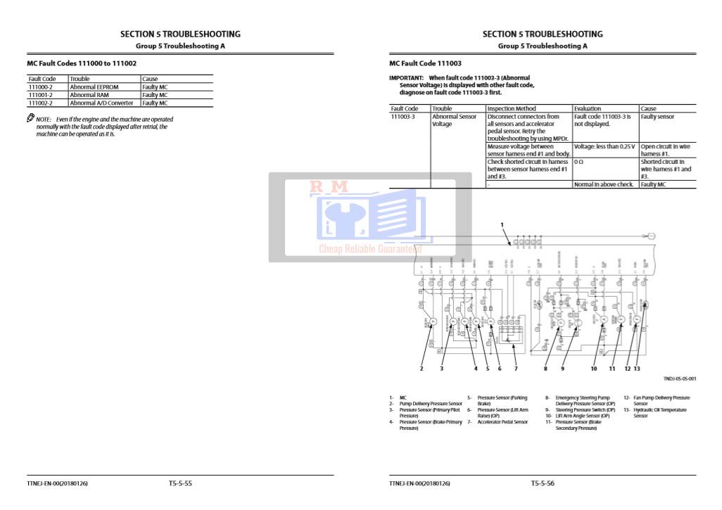 This Technical Troubleshooting Manual is essential for quickly and accurately diagnosing problems on the ZW220-5A Wheel Loader. Whether dealing with sensor failures, electrical faults, or hydraulic performance issues, it provides the technical clarity needed to reduce downtime and complete repairs efficiently.