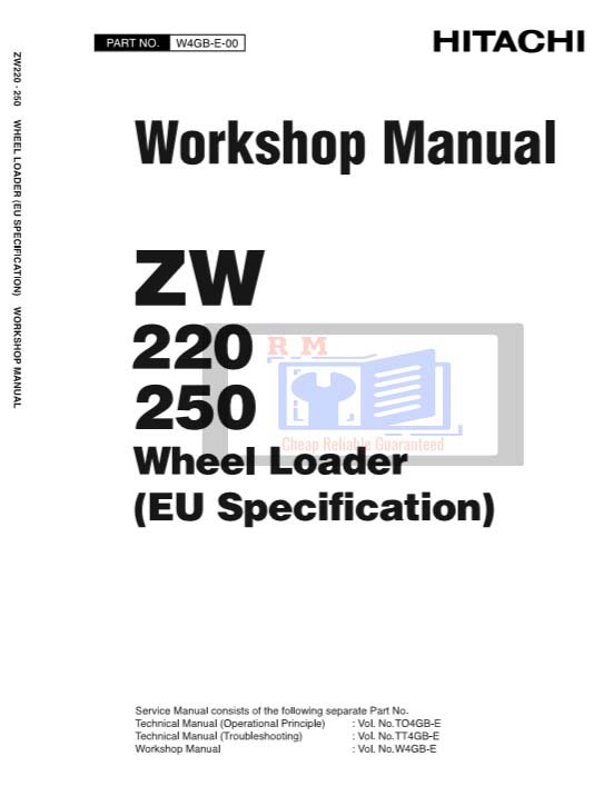 Workshop manual for Hitachi ZW220 and ZW250 Wheel Loaders, including detailed repair and maintenance guidelinesHitachi ZW220, Hitachi ZW250 Wheel Loader Workshop Manual
