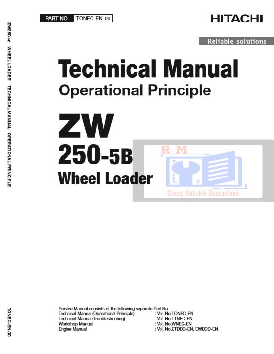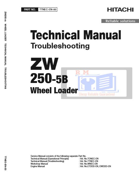 The official Technical Manual set for the Hitachi ZW250-5B Wheel Loader provides detailed factory guidance on the operation, diagnostics, and functionality of all major systems. These manuals are essential for technicians and service professionals performing advanced troubleshooting, fault analysis, and system calibration.