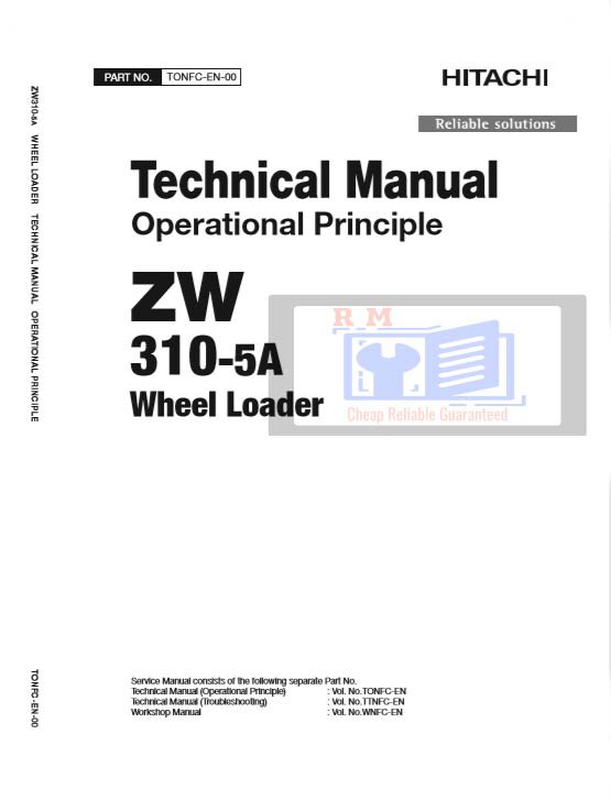 The official Technical Manuals for the Hitachi ZW310-5A Wheel Loader deliver comprehensive system theory, diagnostics, and troubleshooting procedures essential for accurate service and repair. These factory manuals include detailed diagrams and are used by Hitachi-certified technicians to maintain machine performance and reliability.