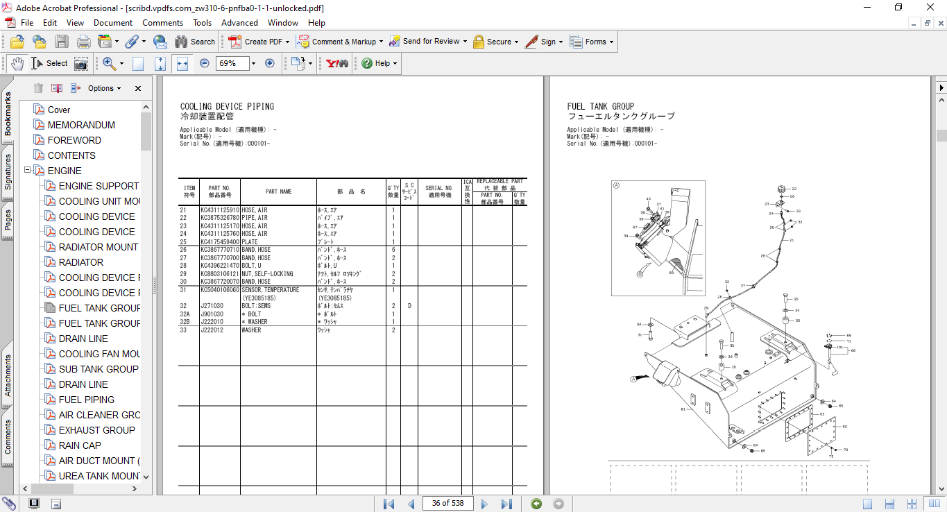 Hitachi ZW310-6 Wheel Loader Parts Catalog