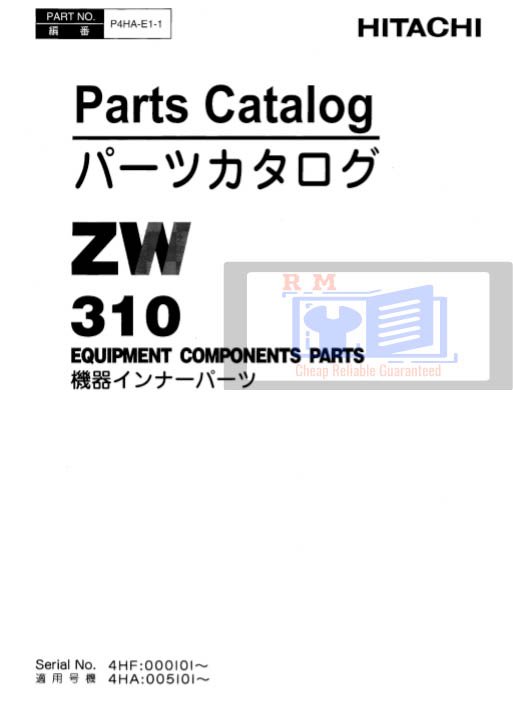 Hitachi ZW 310 Wheel Loader Parts and Components Manuals