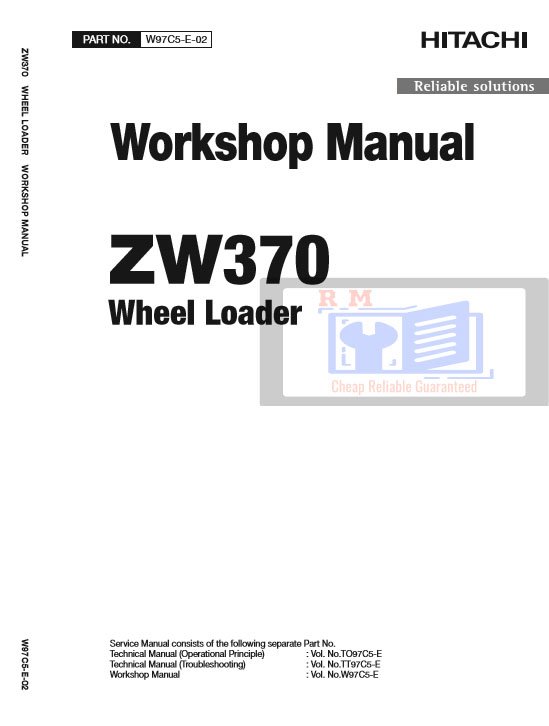 Hitachi ZW370-6 Wheel Loader workshop manual cover featuring diagrams and technical information for maintenance and repairHitachi ZW370-6 Wheel Loader Workshop Manual and Diagrams
