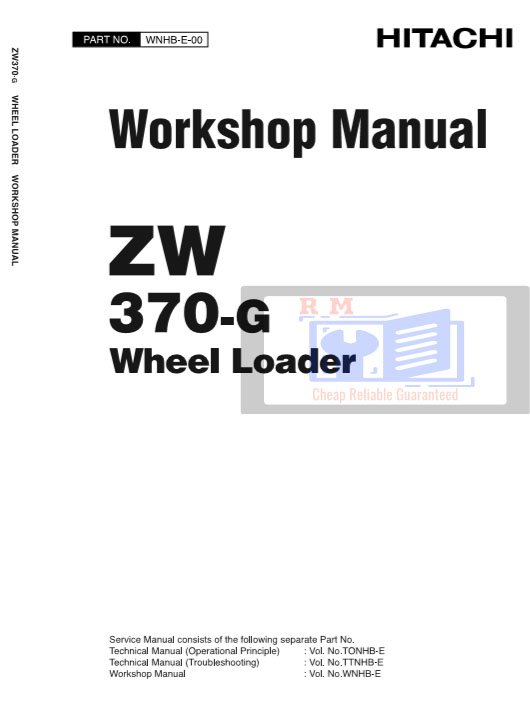 Workshop Manual for Hitachi ZW370-G Wheel Loader, featuring essential maintenance information and repairHitachi ZW370-G Wheel Loader Workshop Manual