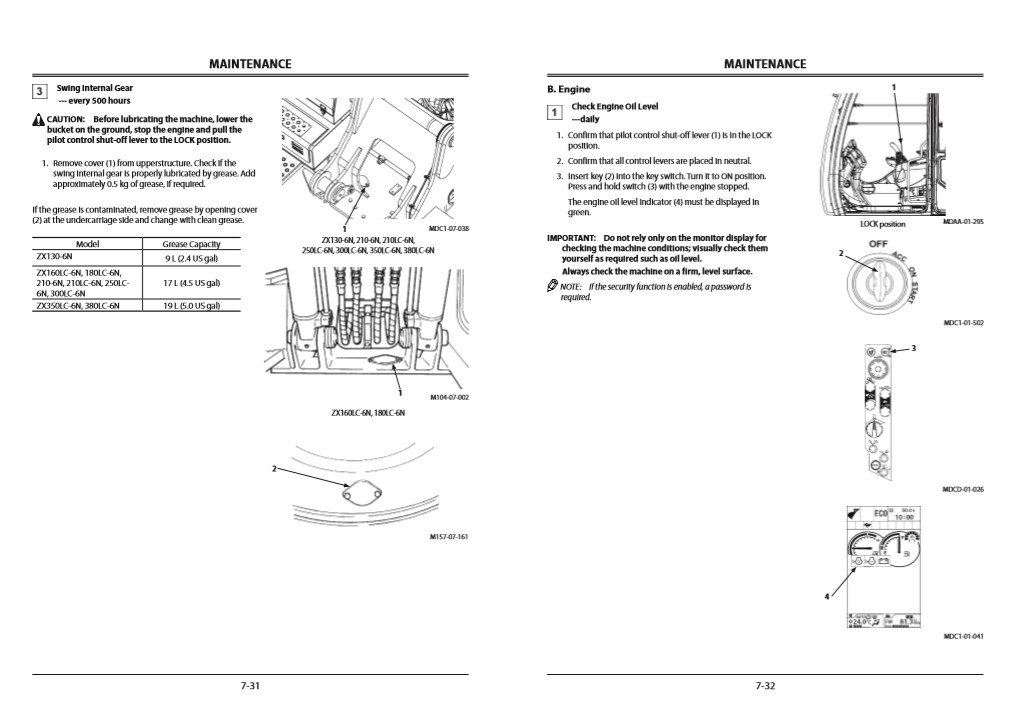 Hitachi ZX130-6, Hitachi ZX160-6, Hitachi ZX180-6, Hitachi ZX210, Hitachi ZX250-6,Hitachi ZX300-6, Hitachi ZX350-6, Hitachi ZX380-6 Operators Manual