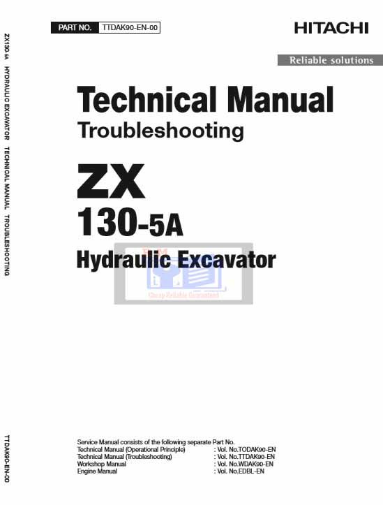 The Hitachi ZX130-5A Technical Manuals are official factory-issued service documents designed to provide complete technical coverage for the ZX130-5A hydraulic excavator. Created for use by dealership service departments, repair shops, and experienced technicians, these manuals contain all the essential information needed for diagnostics, troubleshooting, and accurate machine repairs.